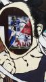 とあるお店前の、顔出し看板越しのマルちゃんです。