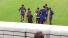 バックスタンド観客に水もろかかってる。
