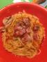 ランチはベーコンのペペロンチーノにした