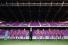 ユニフォーム、選手が上下ソックスまで着用してトータルでみたらめっちゃカッコいい。パンツとソックスのムラサキがいい感じでシャツの赤とマッチしている。